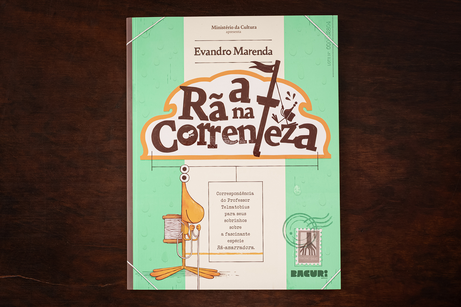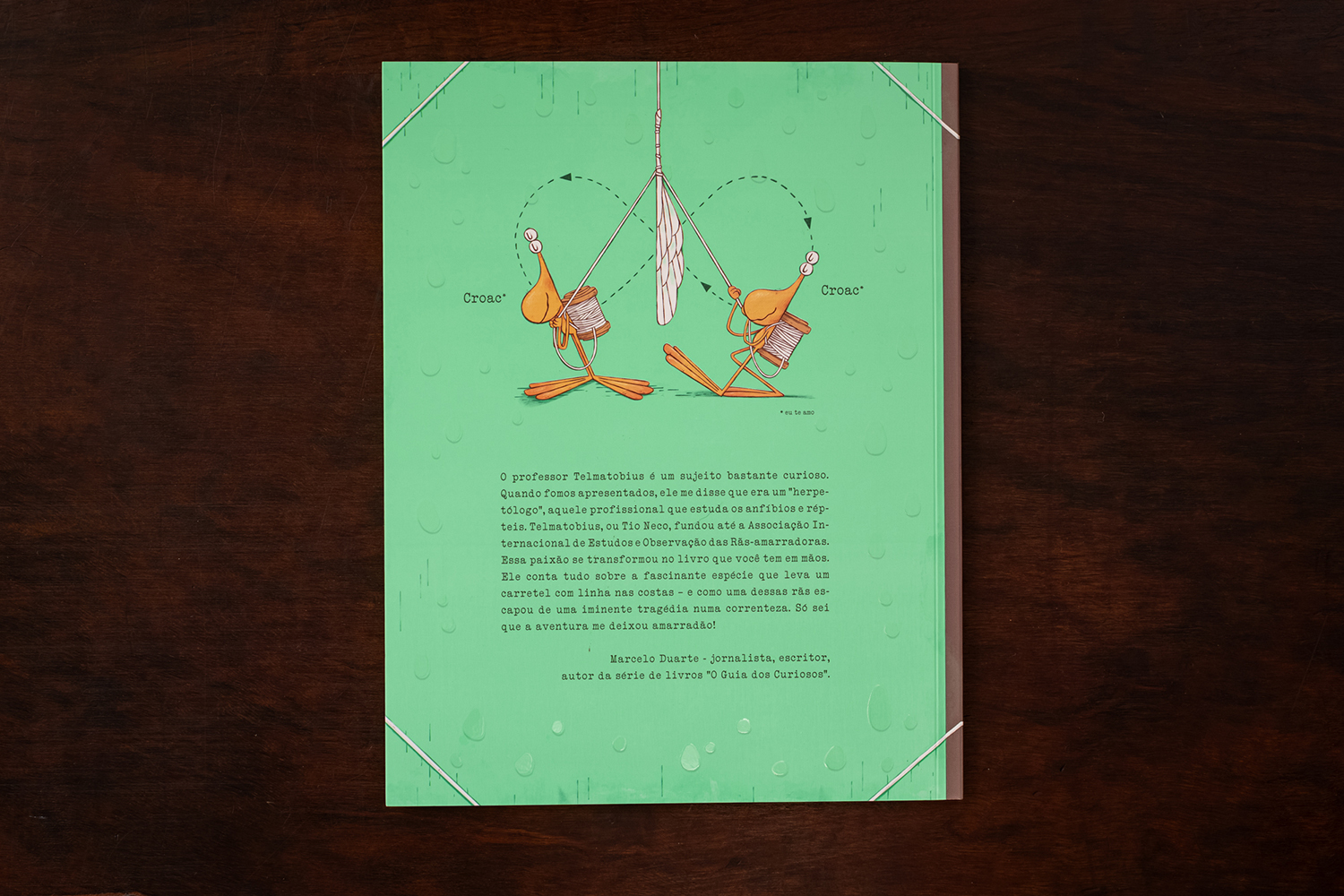 O renomado e curioso herpetólogo Professor Telmatobius, mais conhecido como Tio Neco, escreve uma carta fascinante a seus sobrinhos para apresentar uma espécie extraordinária: a Rã-amarradora. Apaixonado pelo tema, ele chegou até a fundar a Associação Internacional de Estudos e Observação das Rãs-amarradoras! No livro, ele compartilha tudo sobre essa criatura peculiar, que carrega um carretel de linha nas costas – e narra a emocionante aventura de uma dessas rãs ao escapar de uma perigosa correnteza.